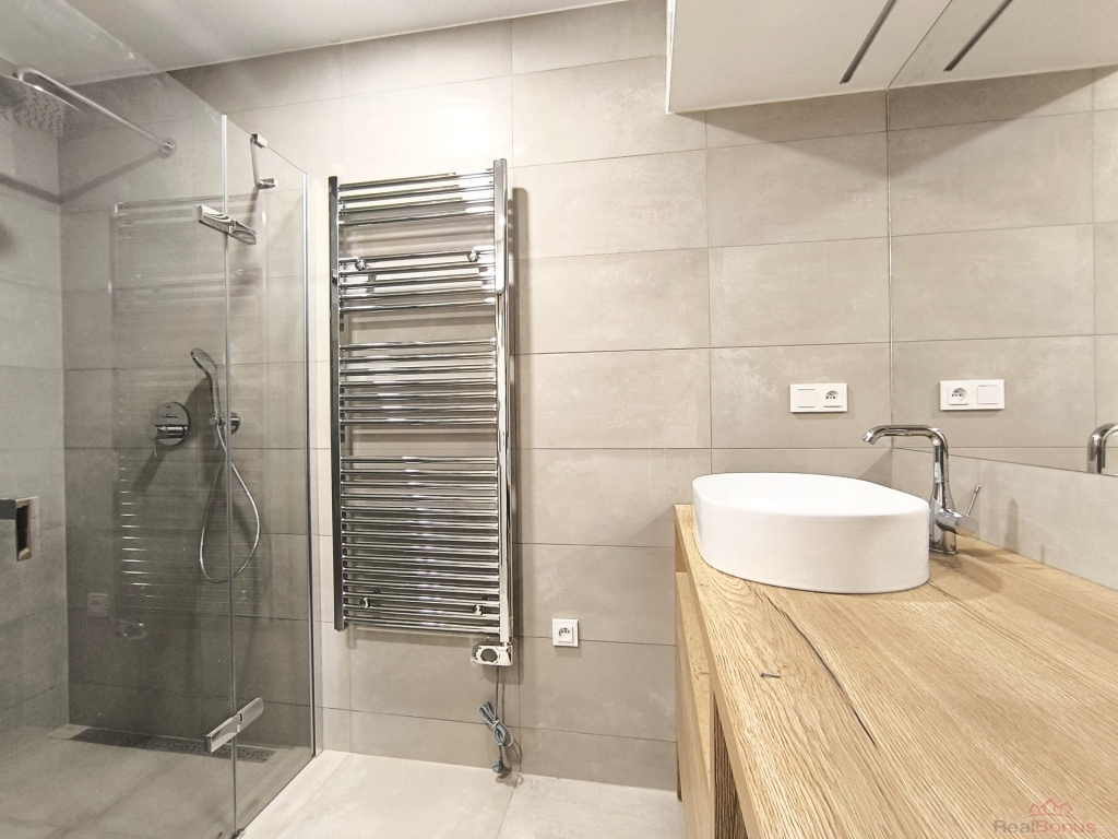 Vybavení: kuchyňská linka včetně spotřebičů, vlastní elektrický kotel/elektrický bojler, vkusné, moderní a nadčasové řešení a materiály