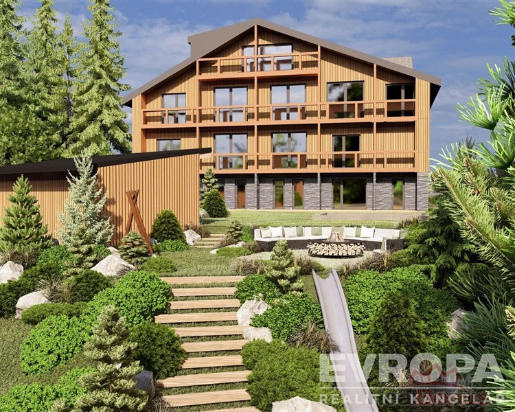 Nový horský apartmánový dům na úžasném místě s výhledem do údolí Špičáku. Výjimečná lokalita v čisté přírodě CHKO na Mariánské Hoře v Albrechticích v Jizerských horách nabízí byt 2+kk o velikosti 72 m s terasa 32.2m.