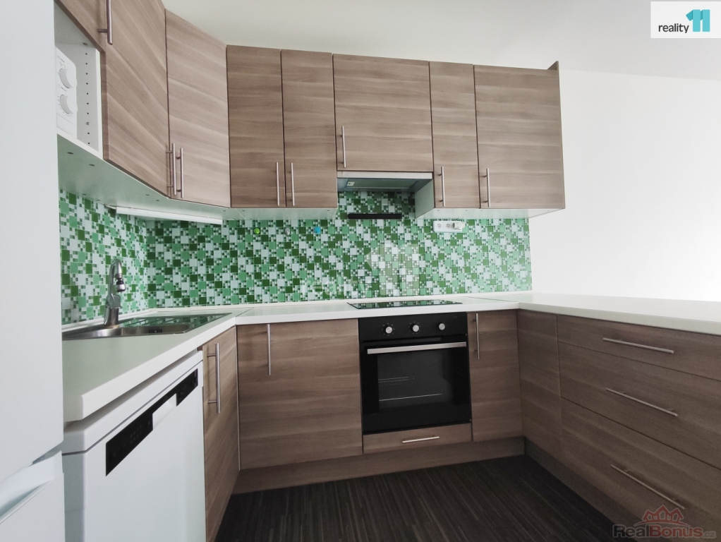 Dominantou bytu je zánovní kuchyňská linka vybavená varnou deskou, troubou, myčkou, novou lednicí s mrazákem a mikrovlnnou troubou vše v moderním stylu, připravené na každodenní vaření i víkendové vaření pro radost.