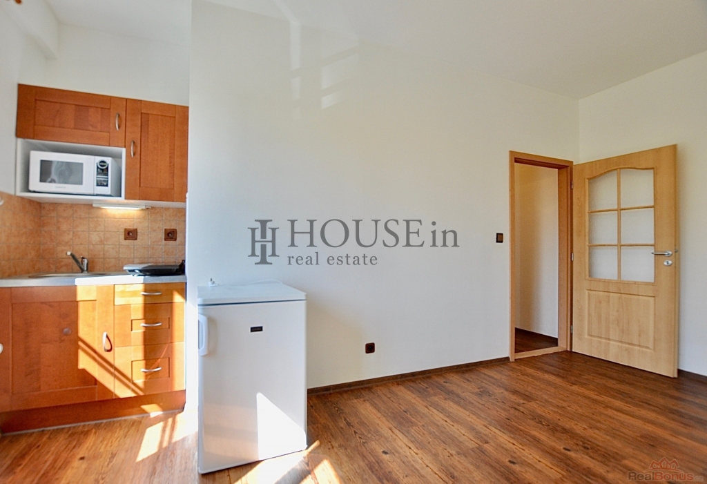 Byt nabízí předsíň, koupelnu se sprchovým koutem a toaletou a prosvětlenou obytnou místnost s kuchyňským koutem orientovanou do klidné zahrady. Kuchyňská linka je vybavena indukční varnou deskou, lednicí s mrazákem a mikrovlnnou troubou s grilem. Internet je již zahrnut v ceně nájmu.