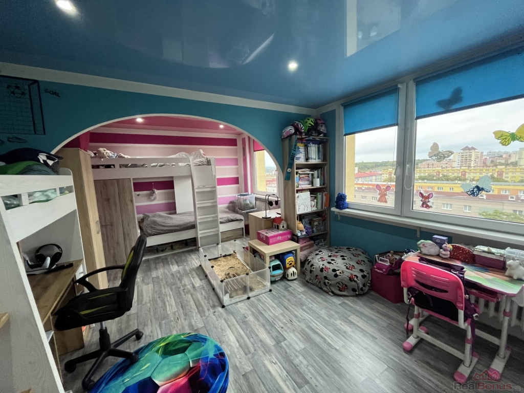 Nabízíme k prodeji družstevní byt o dispozici 3+1 s lodžií, o celkové podlahové ploše 73 m v ulici U Lomu v Mostě. Prostorný byt je umístěn v 7. (předposledním) podlaží klidného panelového domu s výtahem. Byt prošel částečnou rekonstrukcí: vyzděné jádro s vanou, toaletou a dostatečným prostorem na pračku a sušičku, kuchyňská linka se spotřebiči, posuvné dveře do koupelny, interiérové dveře, podlahy a pod. K bytu náleží sklepní koje.