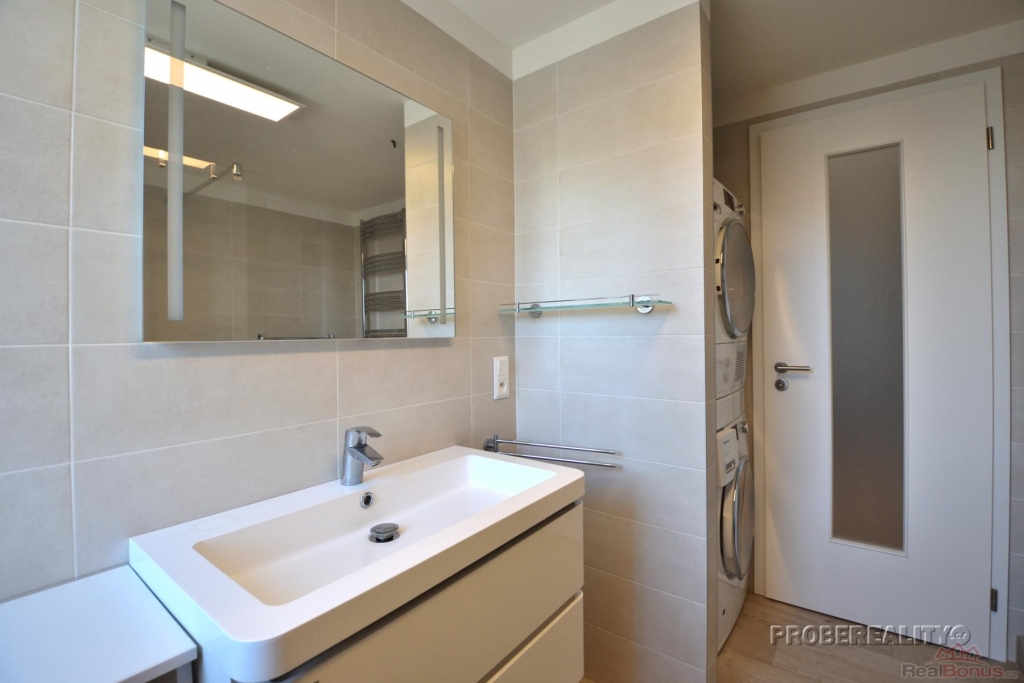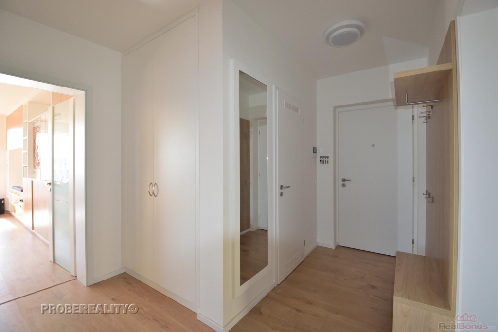 Byt má užitnou plochu 78 m2, balkon 9 m2 a sklep 1,5 m2. Je vybaven novým nábytkem a kvalitními spotřebiči kuchyňská linka se značkovými spotřebiči Siemens (indukční varná deska, trouba, myčka, digestoř) a lednicí s mrazákem Bosch. V obývacím pokoji je televize LG (100 cm) s audio soustavou a nástěnná klimatizace. Ve všech pokojích jsou položeny kvalitní vinylové podlahy. Obývací pokoj s balkonem je orientován na jih, dva další pokoje směřují na sever do klidné zeleně. Koupelna je vybavena sprchovým koutem, pračkou a sušičkou Miele, toaleta je samostatná. Součástí bytu je komora a vestavěná skříň v chodbě, které poskytují dostatek úložného prostoru. K bytu náleží sklep v přízemí budovy a parkovací stání v uzavřeném areálu s přístupem na čip.