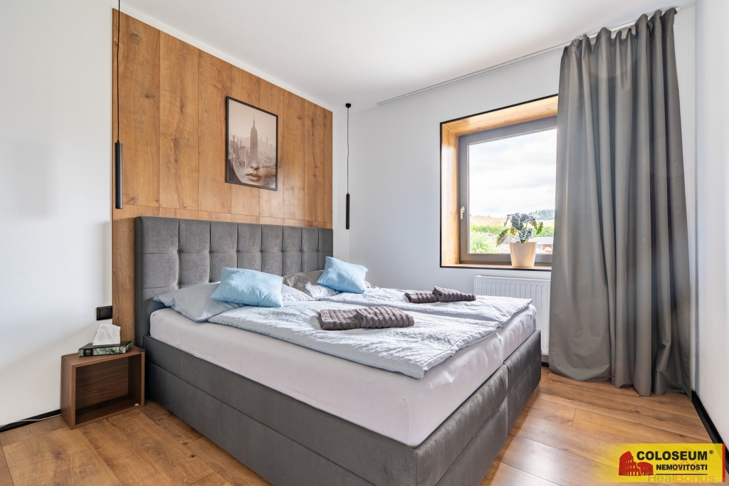 Dům se nachází na pozemku o rozloze 1.804 m2 (dle výpisu katastru nemovitostí) a nabízí 4 prostorné apartmány o přibližných podlahových plochách od 50 do 80 m2, s celkovou kapacitou ubytování až 16 osob a širokým zázemím pro hosty. Samozřejmostí je wellness zóna ? finská sauna s prvky z himalájské soli, venkovní bazén, společenská místnost s barem a projektorem, celkem 5 koupelen, 3 plně vybavené kuchyně. Prostorná terasa, zahrada s bazénem a venkovní posezení je kombinace, která nadchne Vaše hosty, kdo by večer odolal sklence vína u plápolajícího ohně?