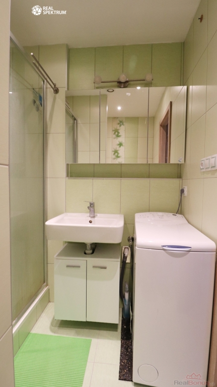 Součástí bytu je vstupní chodba (šatní skříně, botník), obývací pokoj s kuchyňským koutem (lednice, el.sporák, malá myčka nádobí, šatní skříně) a koupelna s WC (sprchový kout, pračka). K bytu náleží sklepní kóje. Nájem 12.000,-Kč + 4.000,-Kč energie a služby. Majitelka požaduje kauci ve výši jedné měsíční platby. Byt je vhodný max. pro 2 osoby. Byt bude volný od 1.11.2025.
