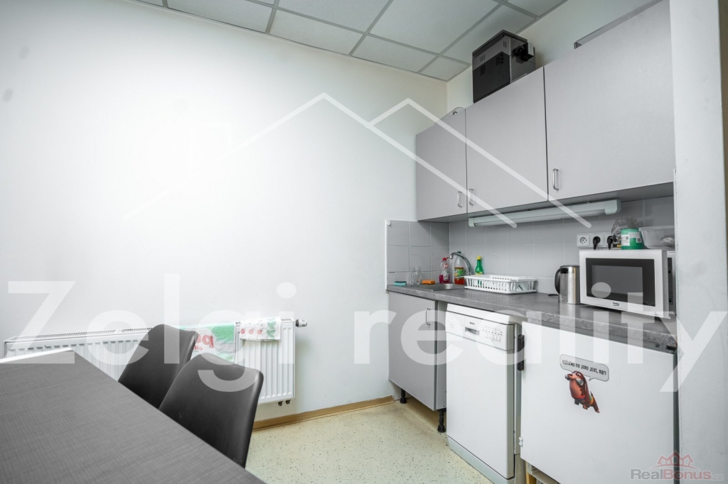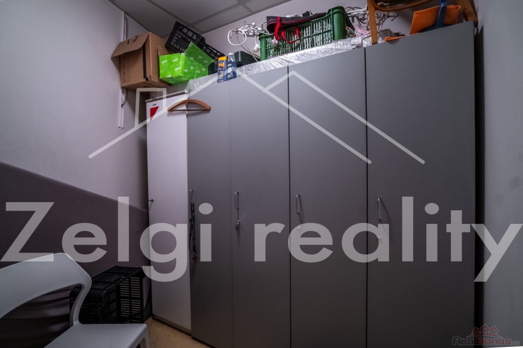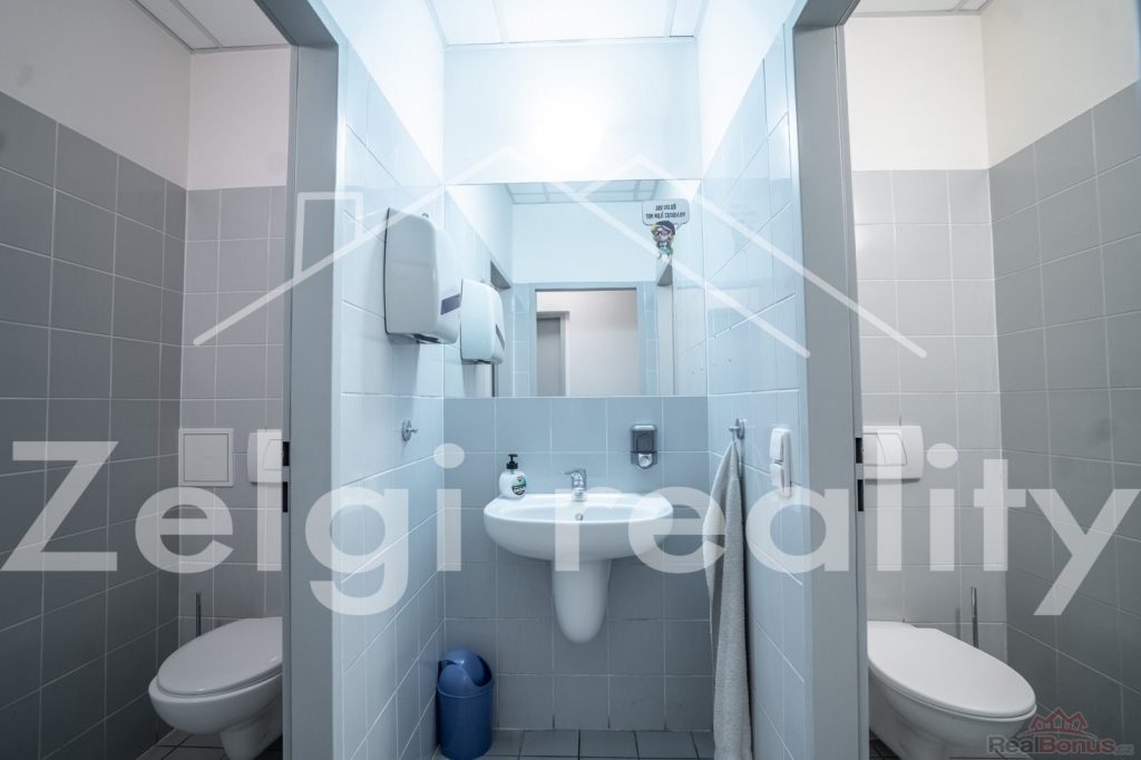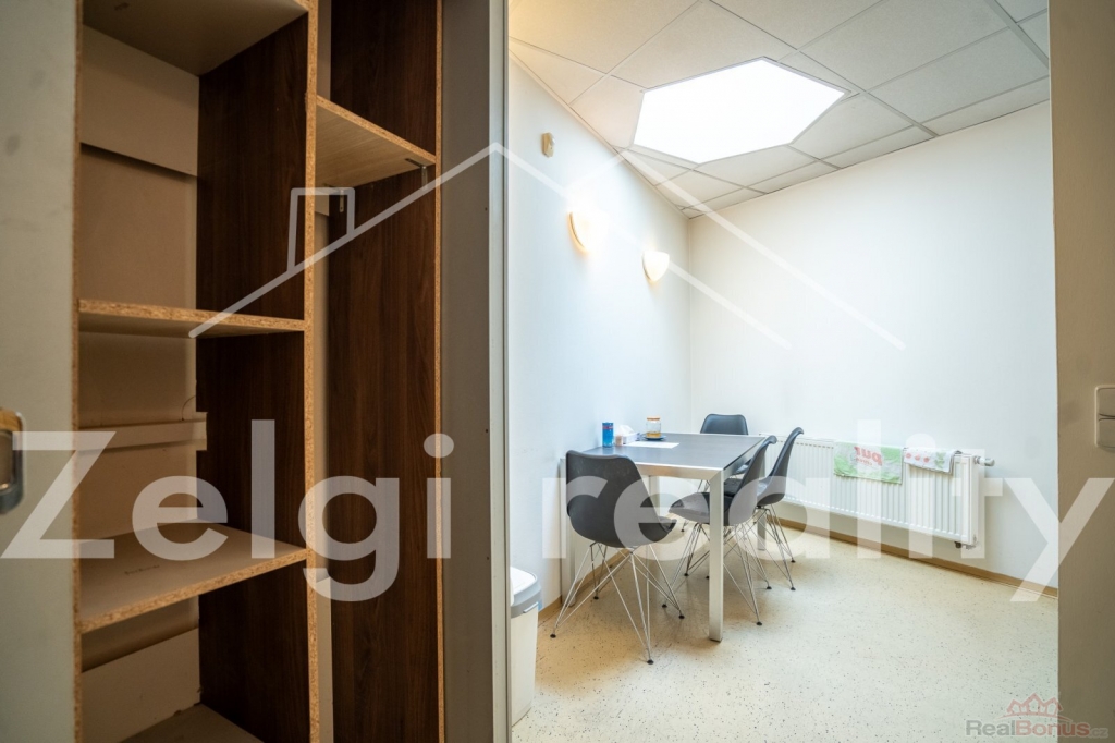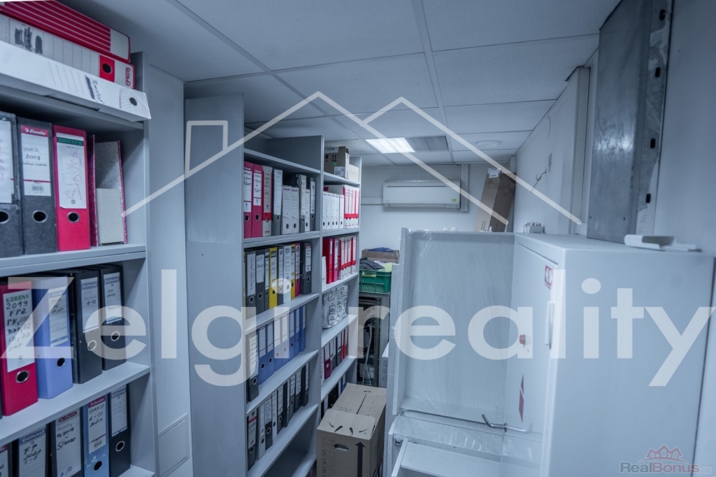Součástí prostor je kompletní zázemí, které zahrnuje sociální zařízení pro personál, technickou místnost, serverovnu a trezor.
