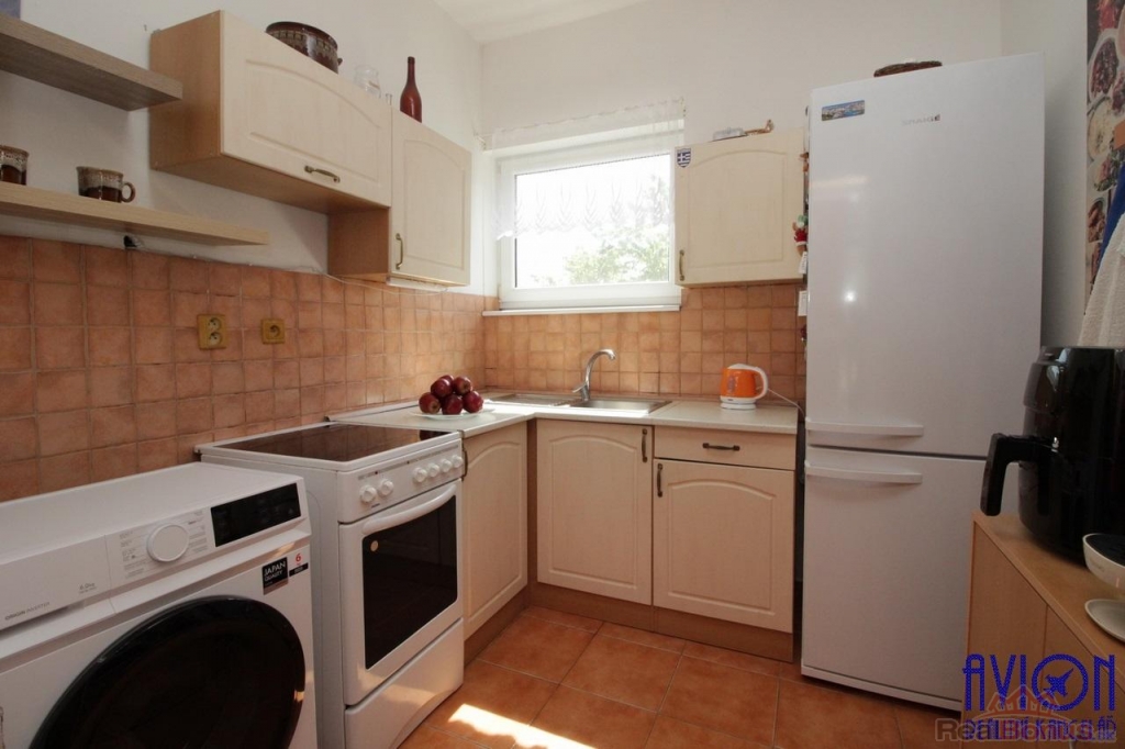 V přízemí se nachází kuchyň s obývacím pokojem s jídelním koutem 24 m2, pokoje o velikostech 11 a 16 m2 se nachází v patře. V přízemí je malá koupelna se sprchovým koutem, v patře se nachází koupelna s toaletou. V celém přízemí je podlahách dlažba, v patře jsou dřevotřískové desky, krytinu tvoří koberce. Obě podlaží propojuje pěkné dřevěné schodiště.