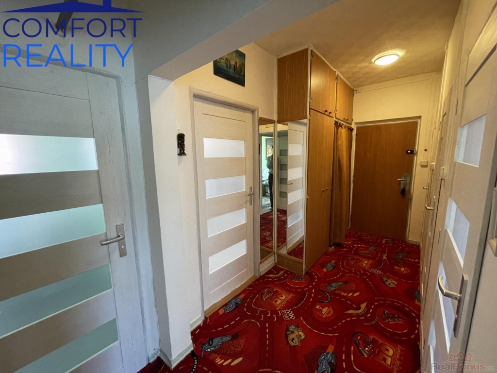 Ve výhradním zastoupení majitele si vám dovoluji nabídnout k pronájmu byt v osobním vlastnictví na jedné z velmi žádaných adres Ostravy Zábřehu, na ul.Výškovická. Byt je dispozičně řešený jako 3+1 s komorou (šatnou), celkem 77,09 m2 podlahové plochy. Výhodou bytu je mimo jiné celkově zajímavé prostorové řešení s neprůchozími pokoji, předsíň s úložnými prostory, kuchyň, velmi prostorný obývací pokoj a dva samostatné pokoje. Proběhla zde před cca 7 lety výměna kuchyňské linky, v koupelně byly před cca 10 lety nalepeny keramické obklady. Byt se nachází v 1.NP/8.NP, revitalizovaného domu s výtahem, v jedné z žádaných částí Ostravy. Okna bytu jsou směrovány na dvě strany a to na JV a SZ. K bytu náleží sklepní kóje v suterénu domu.
