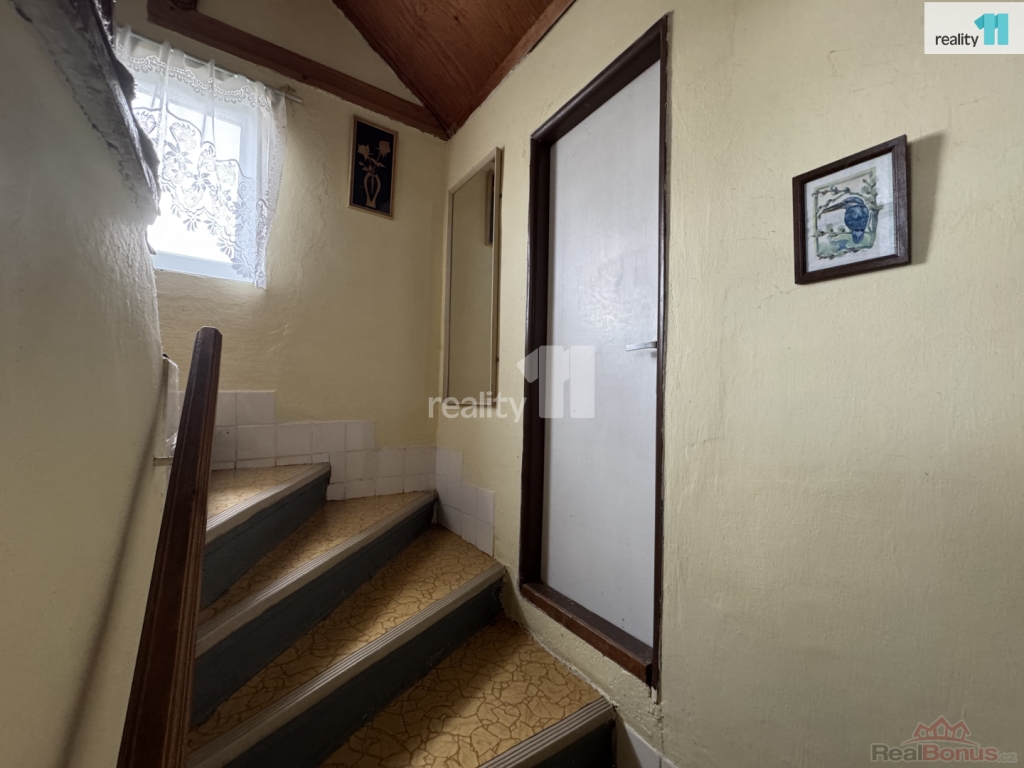 , Prodej rodinného domu před rekonstrukcí. Dům o rozloze 97m se nachází v okrajové, velice klidné části města Chodova vedle zahrádkářské kolonie. Dům disponuje dvěma hlavními vchody přičemž vchodem od silnice se dostaneme na verandu za kterou navazuje chodba ze které projdeme do koupelny, ložnice a obývacího pokoje spojeného s kuchyňským koutem. Za kuchyní navazuje druhá veranda kterou se vstupuje do zahrady. V horním patře domu jsou dva pokoje, jedna malá komora a dvě půdy. Jedna střešní přístupná po žebříku a druhá postranní se vstupem ze schodiště. Zahrada má rozlohu 1340m. Je zde garáž, několik dřevěných kůlen a pergola, ale také spousta prostoru pro zeleň a stromy. Ev. číslo: 27601. Energetický štítek: G
