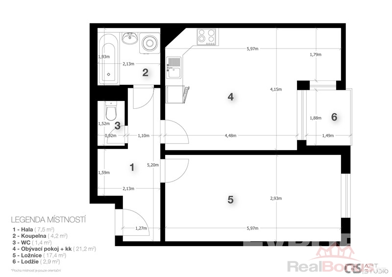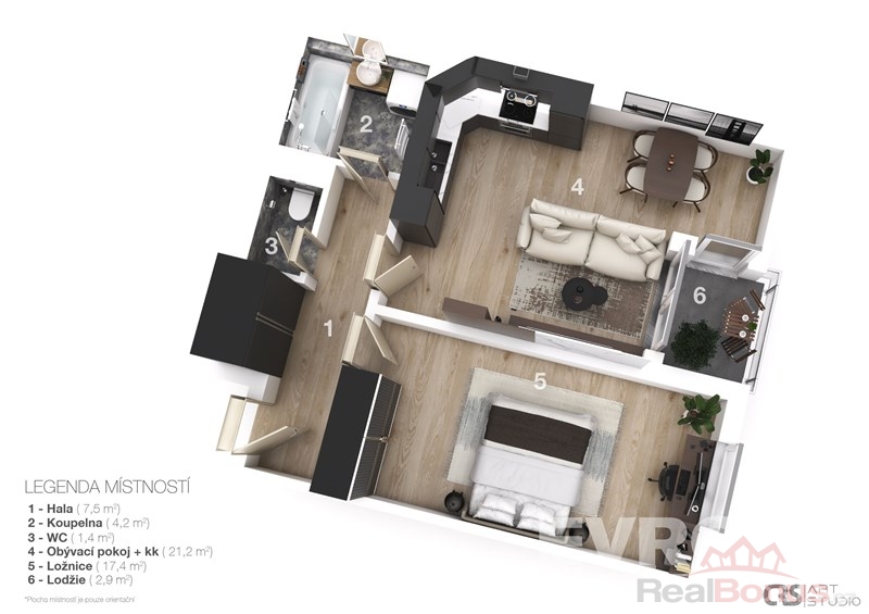 Obývací pokoj s kuchyňským koutem (21,2 m) přímý vstup na lodžii