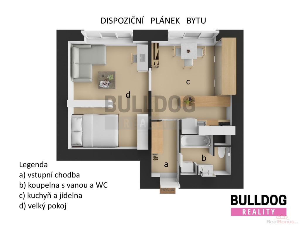 (+ služby 1.820 Kč / 1 os., nebo 2.844 Kč / 2 os., plus el. 1.000 Kč, kauce 20.000 Kč, včetně právního servisu)