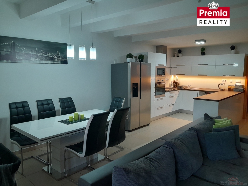 Pro pohodlné bydlení nabízí dům o dispozici 4+kk obytnou plochu 131 m2. Interiér domu splňuje požadavky moderního bydlení. Dům má 2 podlaží, v přízemí se nachází zádveří, chodba, hostinský pokoj, technická místnost, koupelna se sprchovým koutem a toaletou. Hlavní a největší obytnou část domu je obytný prostor o výměře 40 m2, který tvoří obývací část, jídelnu a prostorný kuchyňský kout. Dominantními prvky této místnosti je schodiště, propojující obě patra domu a francouzské okno, přes které se vychází na terasu a zahrádku.