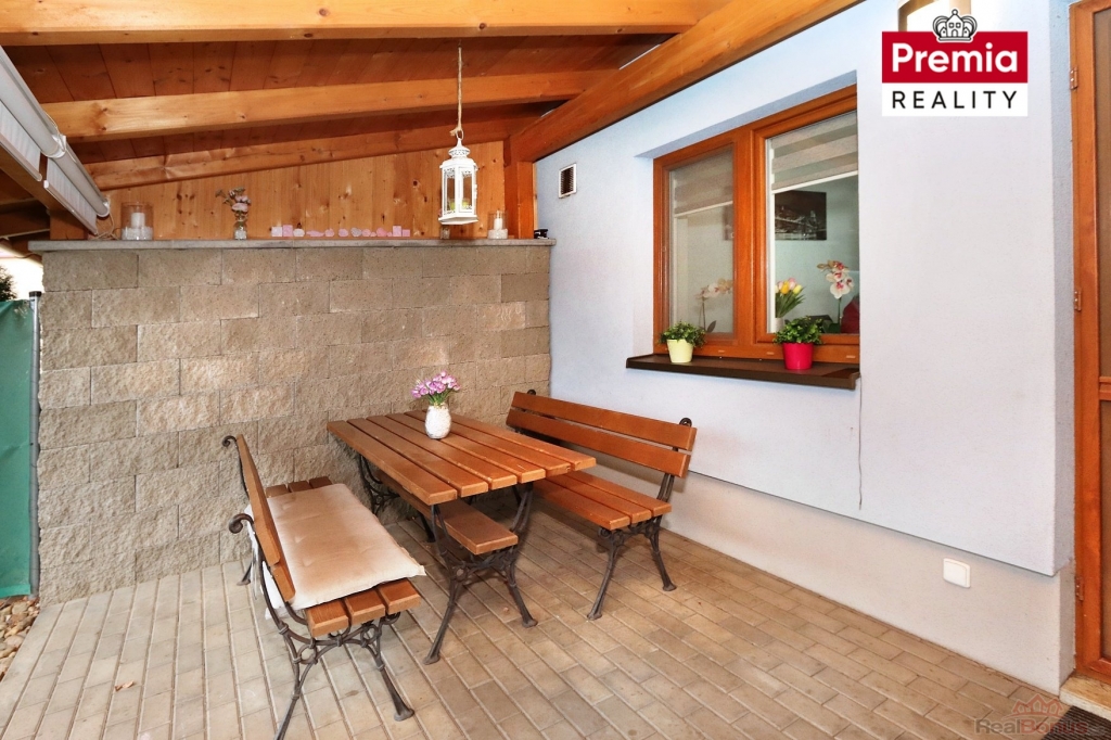 Pro posezení i relaxaci je ideálním prostorem terasa, oplocená zahrádka nabízí dostatek soukromí. Pro uložení zahradního a dílenského nářadí slouží zahradní domek. Dalším úložným prostorem je sklad před domem, kde je možno uskladnit kola i ostatní sportovní vybavení.