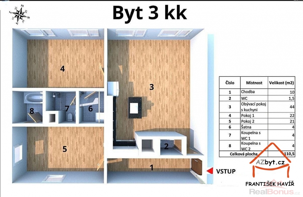 Dispozice bytu | 3+kk |