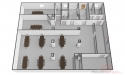 dispoziční řešení: otevřený prostor s nosnými sloupy. V prostoru je několik příček a samostatných místností, ale všechny se mohou odstranit a nechat vzniknout velkému jednotnému prostranství.