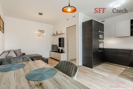 Zařízený apartmán o velikosti 2+kk se skládá ze vstupní chodby s vestavěnou skříní, prostorné komory (šatny) s policemi, obývacího pokoje se vstupem na prostornou terasu, kuchyňského koutu vybaveného všemi spotřebiči jako je myčka, lednice a mrazák (Liebherr), el. trouba, elektrická sklokeramická varná deska, mikrovlnná trouba, digestoř, dále 1 samostatné ložnice s dvoulůžkovou postelí a druhým vchodem na terasu, koupelny s vanou, pračkou a toaletou.