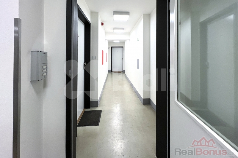 Byt je plně vybaven - kuchyňská linka (vestavěné spotřebiče: myčka, varná deska, trouba, lednice s mrazákem), koupelna s pračkou, el. žaluzie, vestavěné skříně, postel, sedačka a TV.