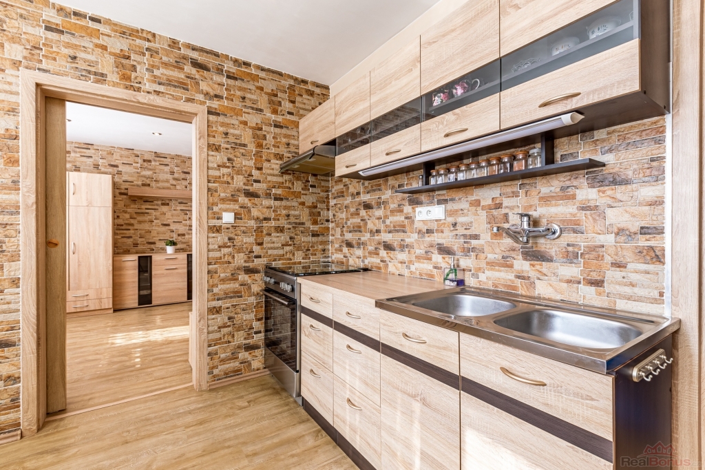 Bytová jednotka je v dobrém stavu, vybavena dle fotografií. Byt sestává z ložnice, kuchyně, předsíně a koupelny. Kuchyňská linka s kombinovaným plynovým sporákem, dvojdřez, mikrovlnná trouba, samostatně stojící lednice. Kuchyně je vybavena jídelní sestavou. V ložnici se nachází dvojlůžko s nočními stolky, šatní skříně, komody. Předsíň se skříněmi a botníkem. Koupelna je vybavena vanou, součástí je pračka.