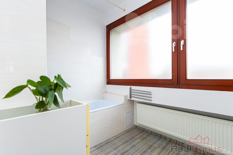 Kuchyňská linka je vybavena vestavnými spotřebiči, koupelna s vanou je prostorná a má místo pro pračku i úložné skříňky. V bytě je dostatek úložného prostoru a k jednotce náleží i praktický sklepní prostor.