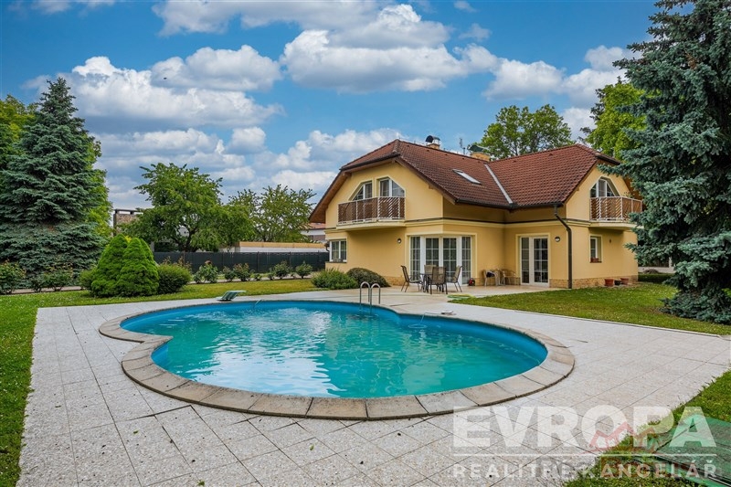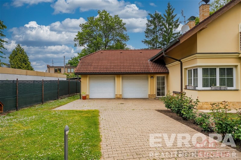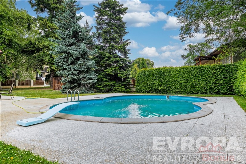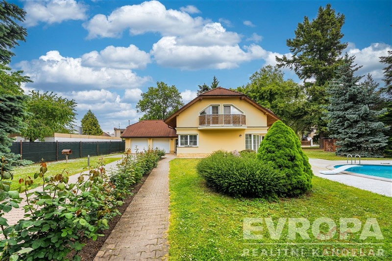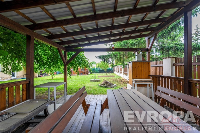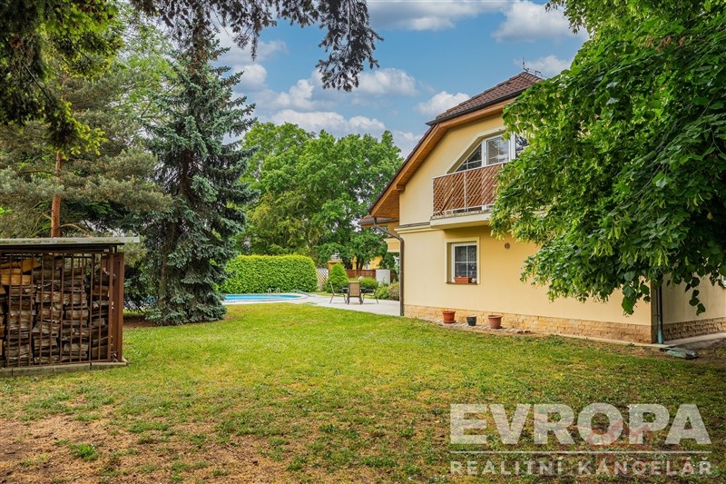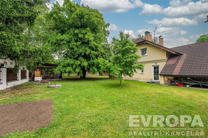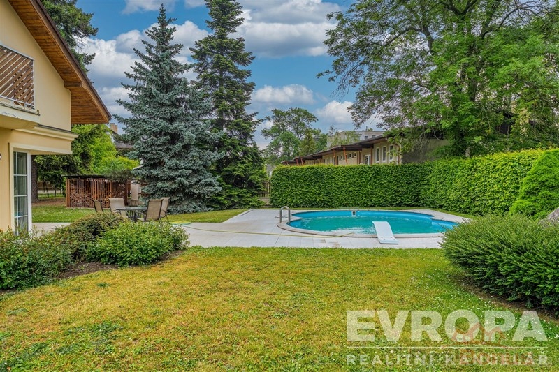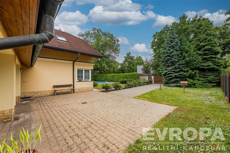 Oplocený pozemek, zabezpečovací systém, prostorná dvoj garáž s dálkovým ovládáním a soukromým vstupem do domu, bazén, zahradní domek, pergola s udírnou jsou pro tento dům samozřejmost.