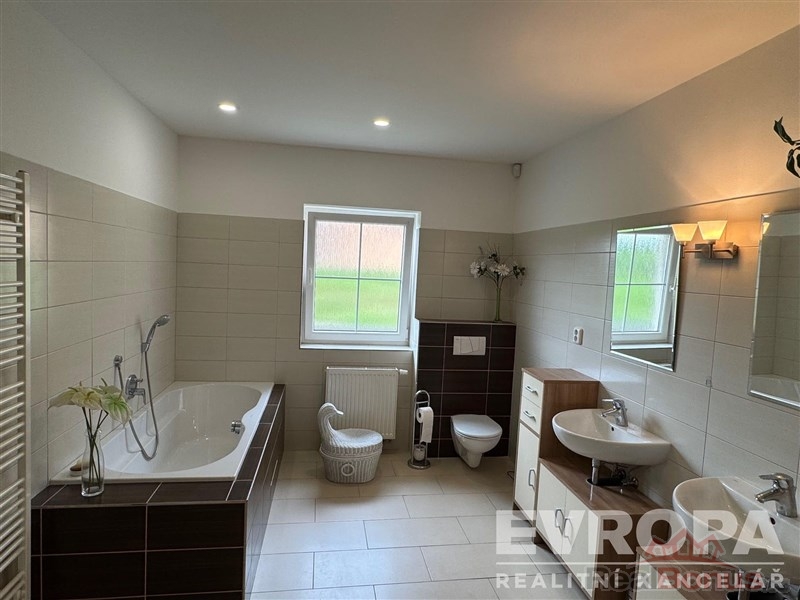 Dům je cihlové konstrukce a byl postaven s velkým důrazem na kvalitu a komfort bydlení. Na prvním patře najdete prostorný obývací pokoj spojený s kuchyní a jídelnou.