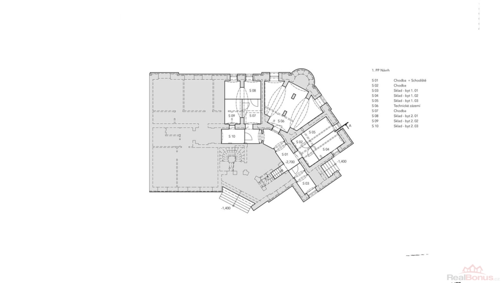 - prostory pro technické zázemí objektu, bude zde umístěna technologie pro vytápění a ohřev