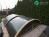 Udržovaná zahrada se zastřešeným bazénem o rozměrech 4x3m.