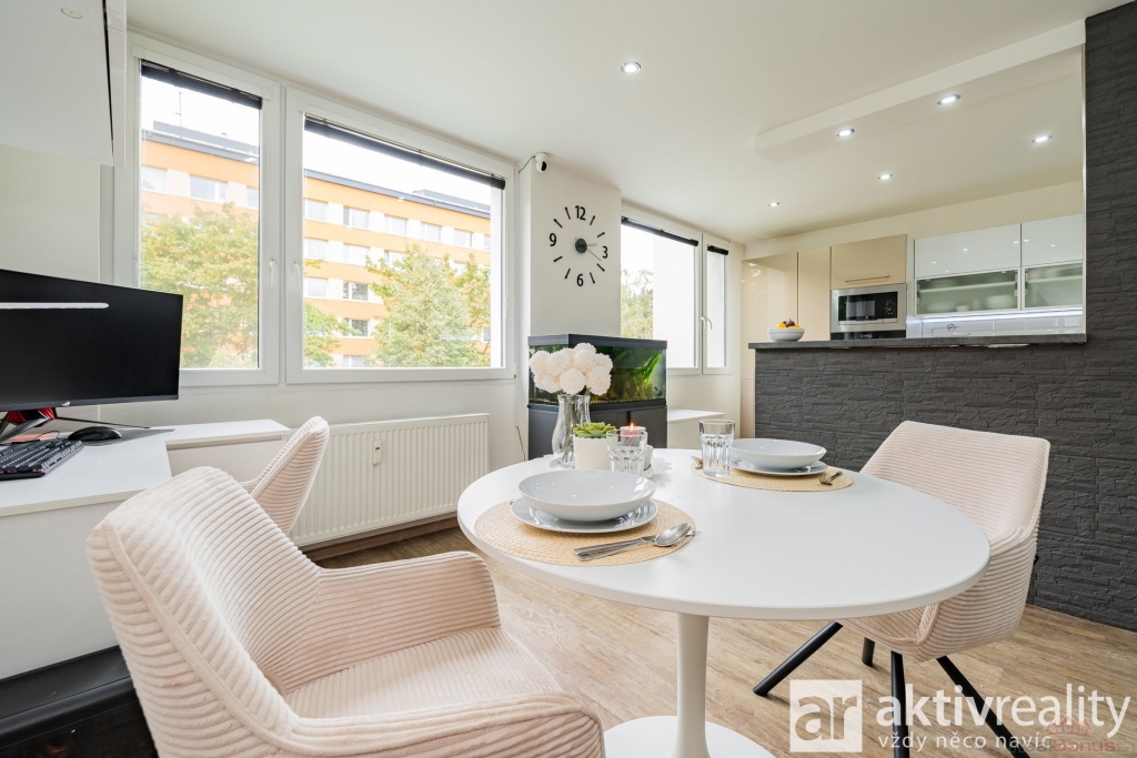 Prodej družstevního bytu 3+1 po kompletní rekonstrukci z roku 2021 ve 3. patře panelového domu po revitalizaci s výtahem v Mělníku. Podrobné informace najdete na webu viz video. Návrh interiéru vycházel z práce architekta, realizace proběhla profesionálně majitelem. Byt je čistý, funkční a připravený k okamžitému užívání bez dalších investic. Obývací pokoj je propojený s kuchyní a oddělený nízkým barovým pultem. Kuchyně do L nabízí dlouhou pracovní plochu, dostatek skříněk a moderní vestavné spotřebiče, navazuje jídelní část a plnohodnotný obývák. Ložnice má přímý vstup do šatny, druhý pokoj slouží jako dětský/pracovna. Předsíň zůstala prostorná a díky vestavným skříním přidává úložné místo. Koupelna je ?tak akorát? na velký sprchový kout, dvojumyvadlo, místo pro pračku i sušičku. Toaleta je samostatná s bidetovou sprškou a malým umyvadlem. Rekonstrukce zahrnovala nové příčky, kompletní elektro a rozvody, srovnání obvodových stěn sádrokartonem (lepší vzhled i akustika), lepený vinyl v obytných místnostech a odhlučnění stěny za kuchyní. Převládají posuvné dveře do pouzder, vstupní dveře jsou bezpečnostní a protipožární. Orientace: obývák s kuchyní jihozápad, ložnice a druhý pokoj severovýchod. K bytu náleží komora naproti dveřím bytu na patře a sklepní kóje. Parkování u domu a na větší ploše naproti přes Bezručovu. V pěší vzdálenosti Kaufland, Tesco, centrum, MHD/linkové autobusy, školy, školky a sportoviště. Podrobné informace najdete na webu viz video.