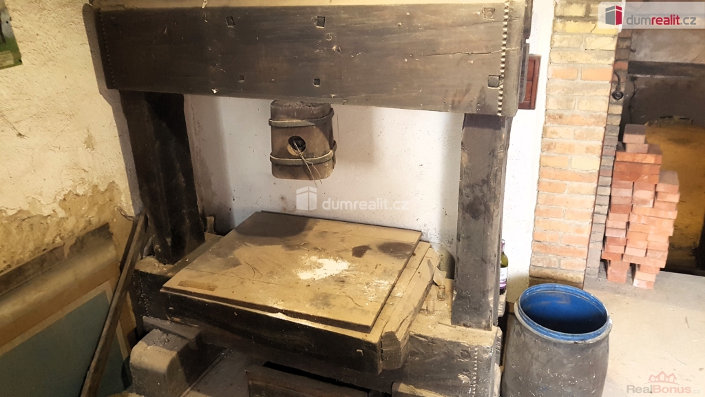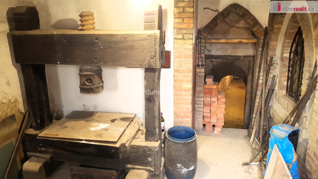 Lisovna (15 m): Úvodní místnost s autentickým dřevěným lisem a schodištěm do vyššího patra. Její prostor se může snadno přeměnit v útulnou vstupní halu s charakterem tradičního vinařského prostoru.