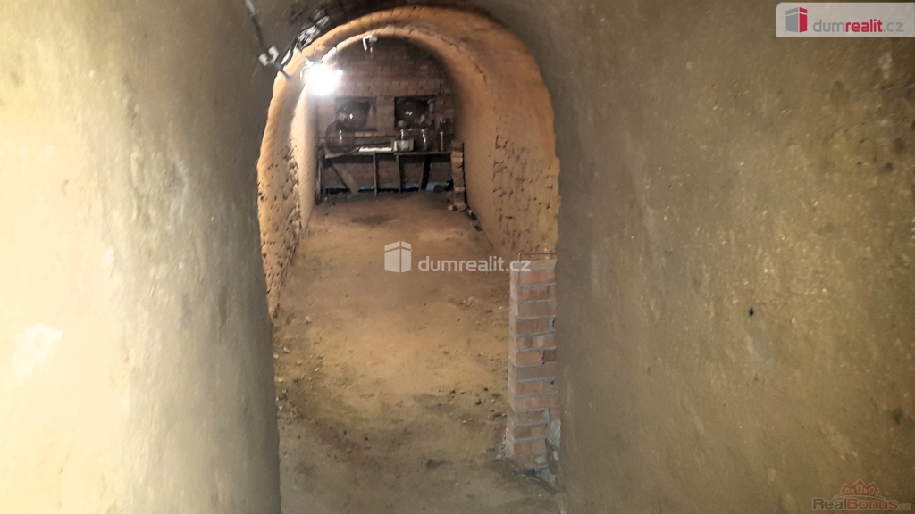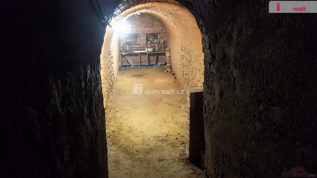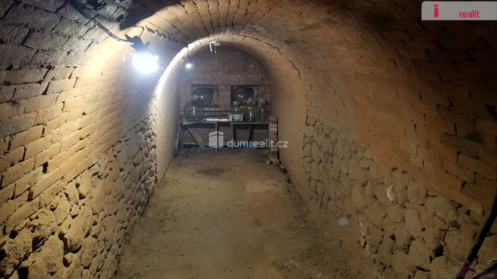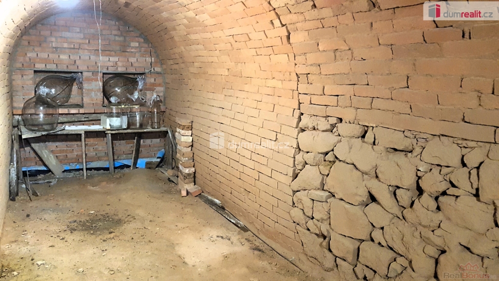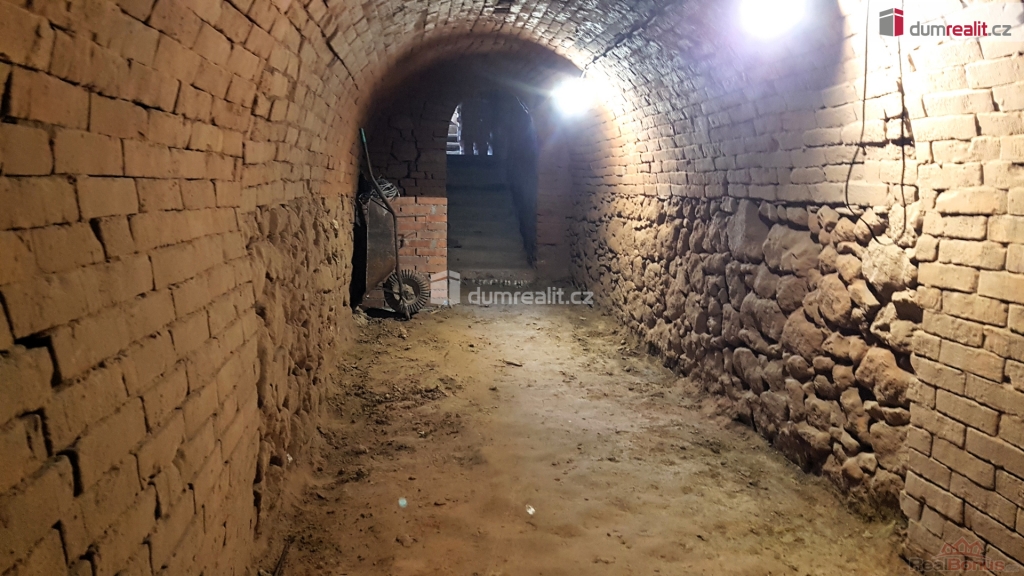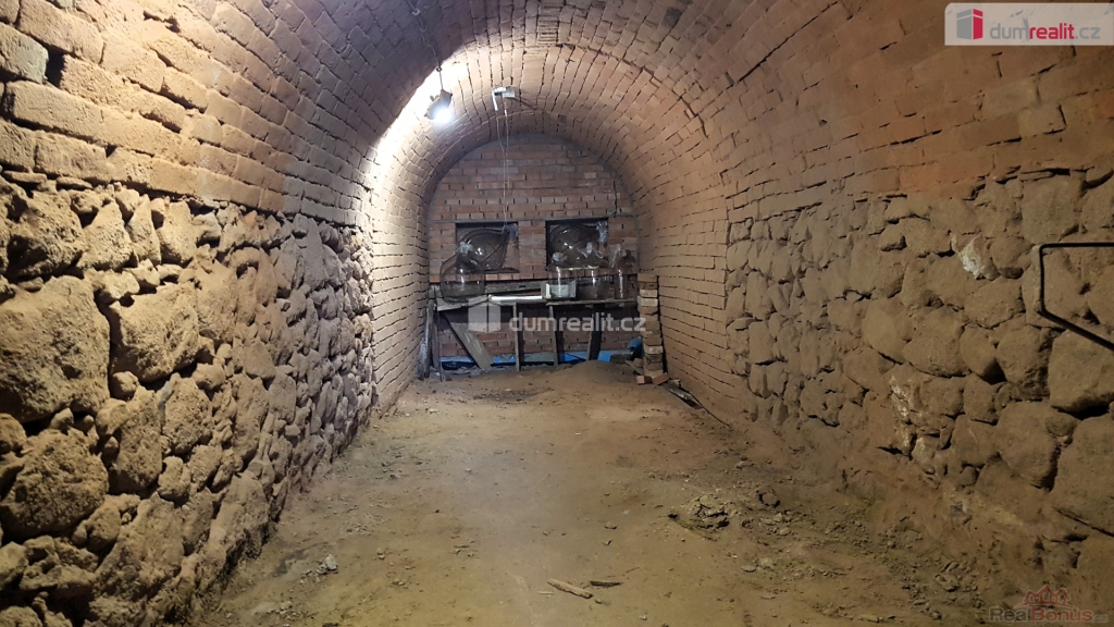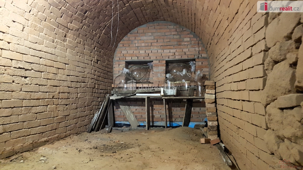 Klenutý sklep (25 m): Působivý cihlový sklep s vysokým klenutým stropem a hliněnou podlahou je dokonalý pro skladování vína nebo přestavbu na jedinečnou vinotéku, která bude mít tu správnou atmosféru.