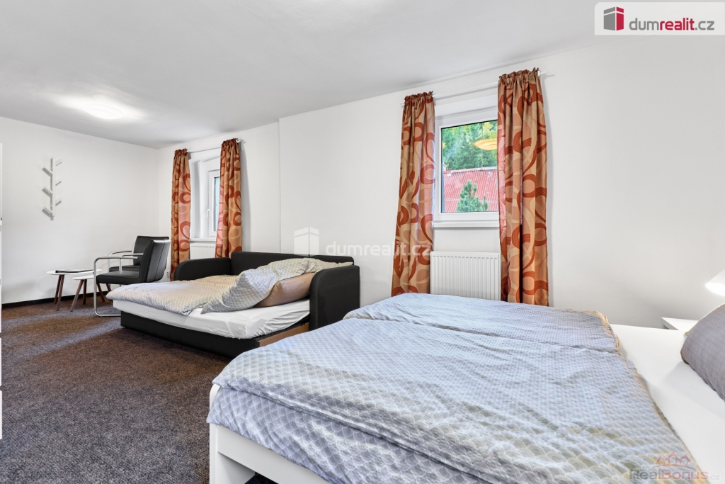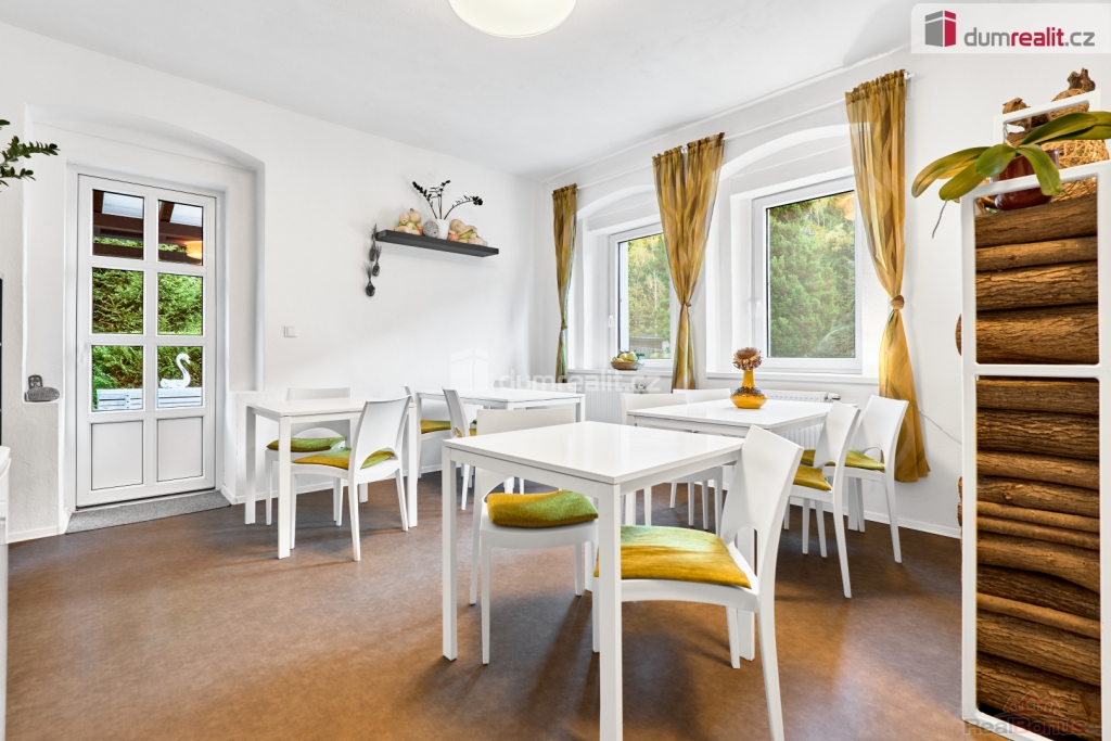 vč. právního servisu a provize RK, V exkluzivním zastoupení nabízíme k prodeji penzion v Krušných horách, v nádherné lokalitě u lesa a v těsné blízkosti lázeňského města Jáchymov. Částečně podsklepený objekt je po celkové rekonstrukci vč. veškerých rozvodů, zateplení a protiradonového opatření. Vytápěn je automatickým kombinovaným kotlem s podavačem na pelety, pitná voda je z vlastního vrtu a odpady jsou svedeny do vlastní ČOV.