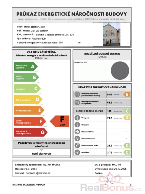 - Energetický štítek bude dodán později. V souladu se zákonem je nemovitost dočasně zařazena do energetické třídy G.