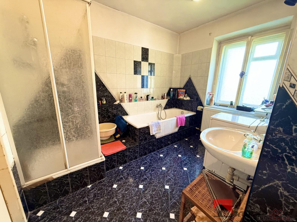 V patře je k dispozici půda, která přímo vybízí k vestavbě a rozšíření o další obytné místnosti například ložnice či pracovnu.