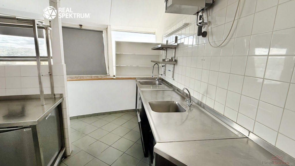 Nabízíme výjimečný prostor pro kavárnu o výměře 174 m2 v 16. NP M Paláce ? nejvyšším patře budovy. Kruhový půdorys v kombinaci s výškou přináší působivé panoramatické výhledy na Brno a silný ?wow-efekt?. Prostory jsou zkolaudované pro gastro provoz; k dispozici je kuchyň i základní nábytkové vybavení.