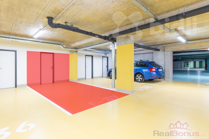 Dále je možnost si pronajmout vnitřní parkovací místo se sklepní kójí o velikosti 3,4 m2, které se nachází v 1. podzemní podlaží bytového domu za 2 500 Kč/měsíc a nebo jen samotné parkovací místo za 2 000 Kč/měsíc.