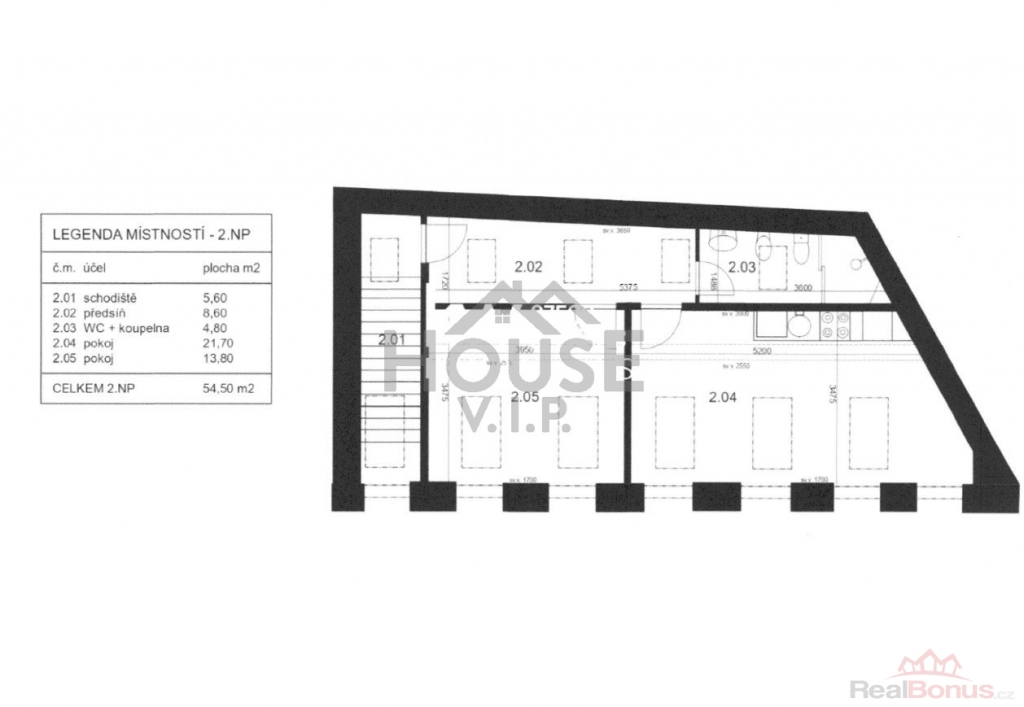 | Celková podlahová plocha | 55 m² |