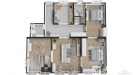 Dispozice bytu zahrnuje obývací pokoj s přilehlou pracovnou, dvě ložnice, kuchyň, koupelnu s vanou a toaletou, druhou koupelnu se sprchovým koutem a toaletou, halu a komoru. Kuchyň je plně vybavená dle fotek, ložnice pouze s vestavěnou skříní, v chodbě knihovna, v technické místnosti je pračka se sušičkou.