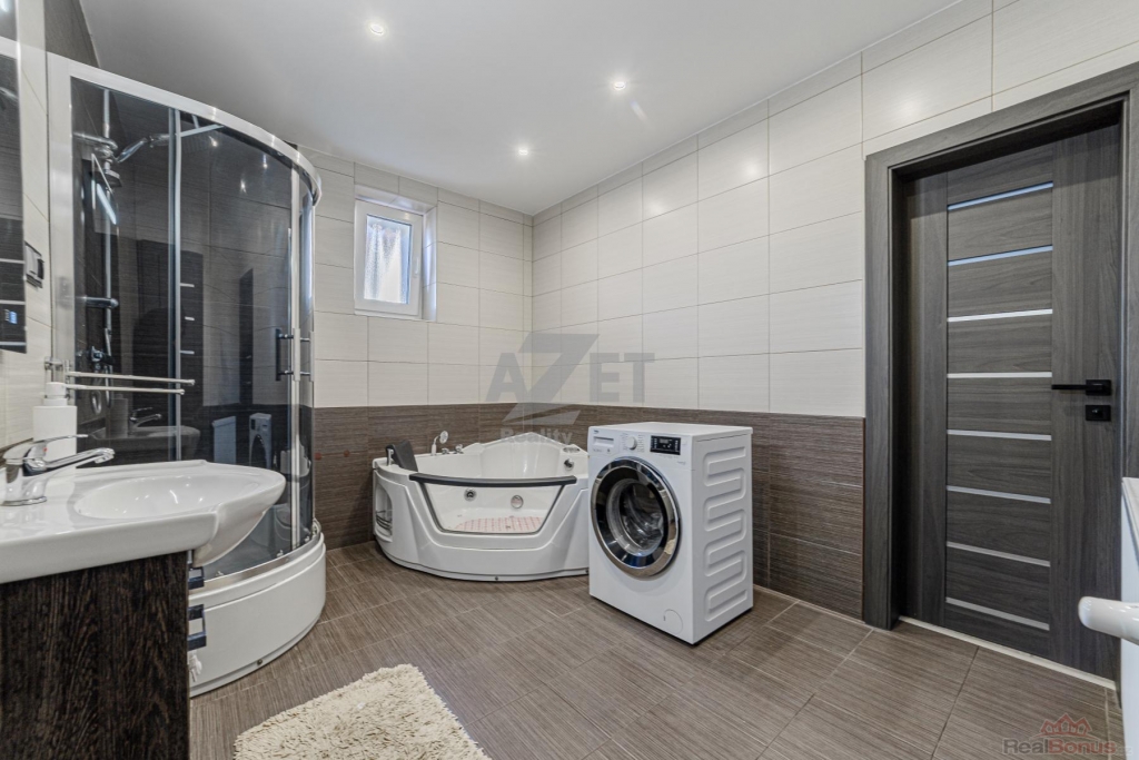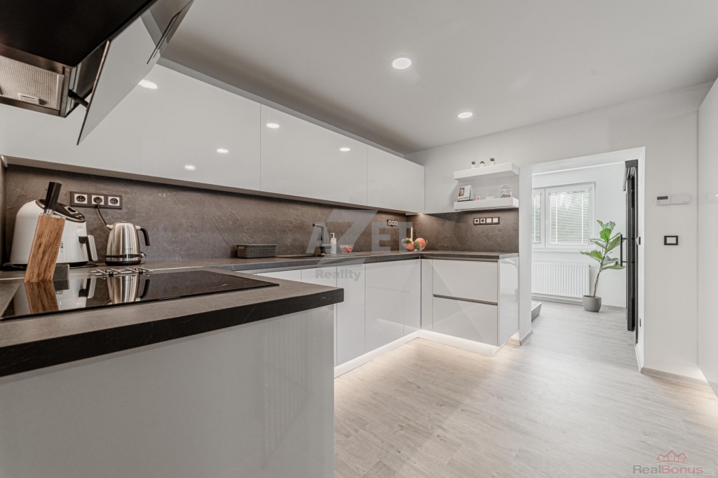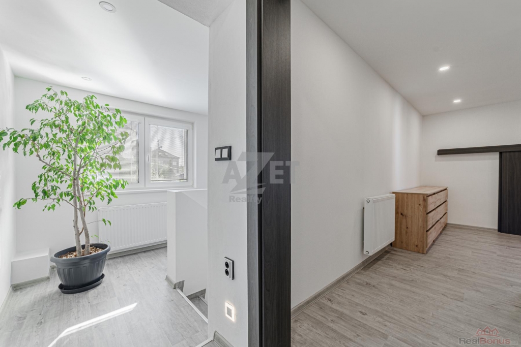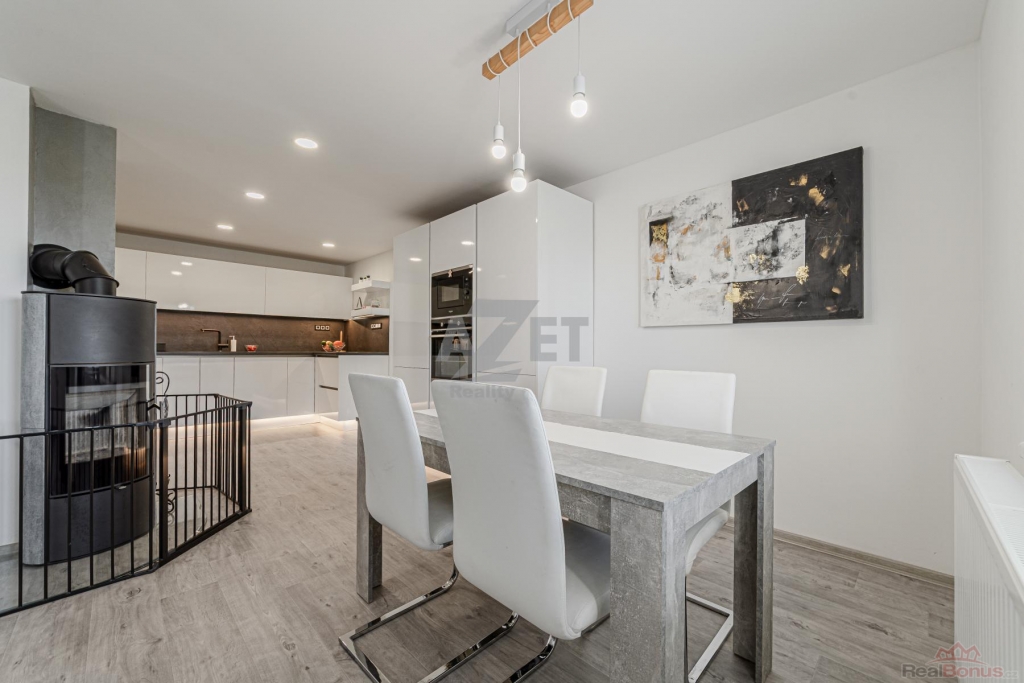 V přízemí vás přivítá světlá kuchyně s jídelnou propojená s obývacím pokojem, moderní koupelna s vanou a sprchovým koutem, praktická technická místnost a kotelna s přímým vstupem do garáže.