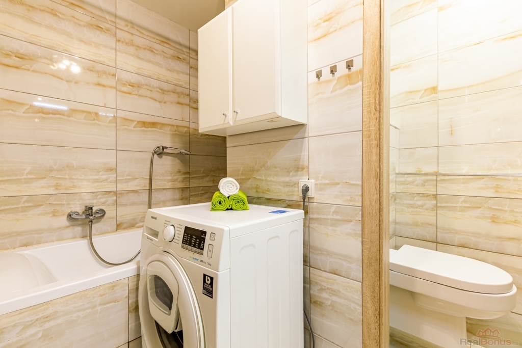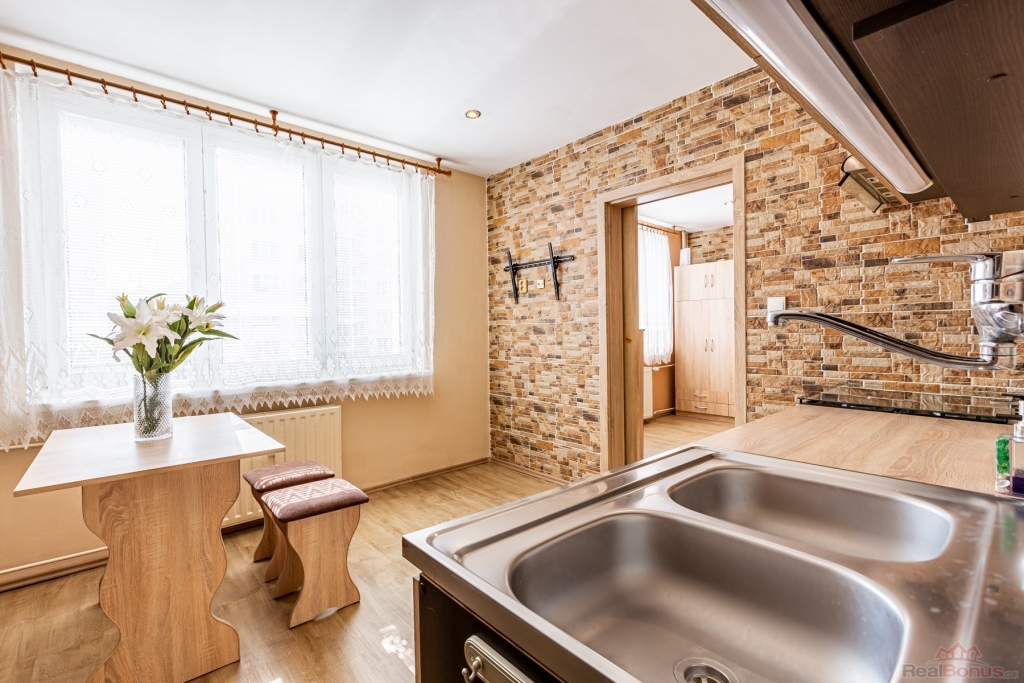 Bytová jednotka je v dobrém stavu, vybavena dle fotografií. Byt sestává z ložnice, kuchyně, předsíně a koupelny. Kuchyňská linka s kombinovaným plynovým sporákem, dvojdřez, mikrovlnná trouba, samostatně stojící lednice. Kuchyně je vybavena jídelní sestavou. V ložnici se nachází dvojlůžko s nočními stolky, šatní skříně, komody. Předsíň se skříněmi a botníkem. Koupelna je vybavena vanou, součástí je pračka.