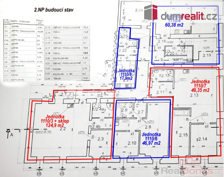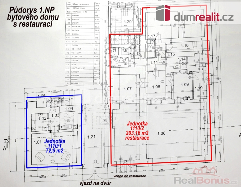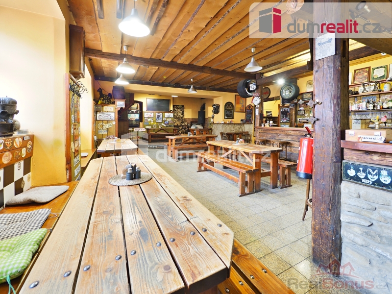 , Možný prodej bytového domu s nebytovým prostorem, restaurací. V současné době je hotových 5 bytových jednotek, z toho 4 jsou zkolaudované. Zbývá dokončit dvě jednotky. Každá jednotka má vlastní elektroměr, elektrokotel na topení a el. bojler na ohřev teplé vody. Jednotka č. 1 nabízí 72,6 m včetně sklepa, jednotka č. 2 restaurace činí 203 m, jednotka č. 3 celkem 124,9 m včetně sklepa o velikosti 46,85 m, tento sklep je používán jako soukromý prostor - bar, jednotka č. 4, rozestavěná nabízí 60,4 m. Jednotka č. 5, nedokončená 274,7m, jednotka č. 6 nabízí 46,97m, jednotka č. 7 69,35m, jednotka č. 8 - 17,95 m. Dvůr u domu, přístupný přes průjezd o velikosti cca 300 m umožňuje parkování vozidel v zastřešeném stání a zastřešené posezení. V průjezdu je pak vstup do soukromého prostoru baru.