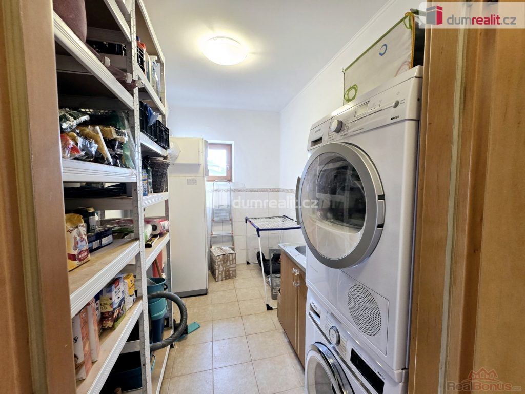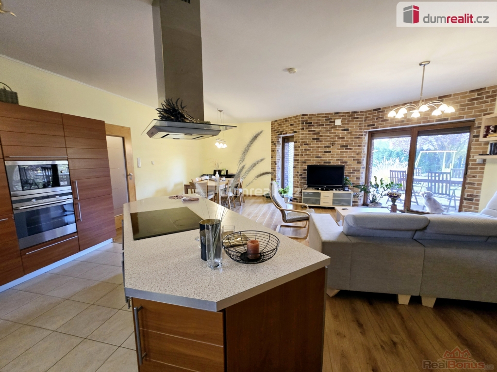 Cena je pevná., prodej rodinného domu ve Staré Boleslavi, která je součástí dvojměstí Brandýs nad Labem-Stará Boleslav. Ne, náhodou se toto město pravidelně umisťují v TOP 5 městech v ČR, podle indexu kvality života a bydlení. Dům je dispozičně řešen jako 4+kk a disponuje užitnou plochou přes 140 m a pozemkem o rozloze cca 649 m. V případě potřeby lze upravit dispozici dle vlastních potřeb. Nosné stěny v domě jsou pouze obvodové. Díky tomu lze všechny vnitřní příčky upravit a také v případě nutnosti řešit výměnou vazníků rozšíření prostoru o dalších cca 90m. Součástí pozemku je také zahradní domek o velikosti 24m s mezipatrem , sloužící pro uskladnění všeho potřebného od kol, lyží ,sekačky, kol pro auta. Dále je na pozemku zkolaudovaná studna, sloužící jako vlastní zdroj vody pro zalévání zahrady. Zde je již vybudována závlaha. Dům byl kolaudován roku 2008 a postaven z veloxu o tloušťce 37 cm s vloženou 15cm tepelnou izolací. Výška stropů v domě je 2, 62 m. Vnitřek domu je uspořádán následovně: přes zádveří (jsou zde již vybudované vestavěné skříně) navazuje prostorná chodba, odkud jsou přístupné všechny místnosti v domě. Konkrétně se bavme o dvou dětských pokojích/ložnicích, technické místnosti/prádelně a koupelny, která je společná s toaletou. Najdeme zde sprchu i rohovou vanu. Z chodby se rovněž dostaneme do velkoryse řešeného obývacího pokoje s kuchyňským koutem, který byl prakticky rozdělen na několik zón. Současní majitelé zde vybudovali prostor pro trávení času u televize, tedy klasický obývací pokoj, kuchyňský kout s dostatkem prostoru i pro velké kuchtíky, ale také jídelní, nebo pracovní kout. Ze všech obytných místností vede přímý vstup na terasu/ zahradu. Na oknech jsou nainstalované venkovní rolety. Vytápění v domě je řešeno, jako podlahové teplovodní, tedy bez radiátorů. Teplotu v jednotlivých místnostech lze regulovat termostaty. Dům pro ohřev vody a rekuperaci využívá jednotku LWA 303 od firmy Stiebel Eltron. Dům se vyznačuje dostatkem soukromí a vskutku jedinečnou atmosférou. Pokud si přejete bydlet v klidu a mít kolem sebe dostatek zeleně, přesto být součástí města s výbornou dostupností do Prahy, pak je tento dům právě pro Vás. V Brandýse n/L a St. Boleslavi najdete vše co k životu potřebujete a bude Vás činit šťastnými. Poloha domu je velmi dobře položena v rámci města. Pěšky se dostanete do centra za 7 minut. V centru je základní škola, obchody, atd. Mateřská škola ve vzdálenosti 2 minut od domu. Pokud jste milovník přírody, ať zvolíte koupání na Proboštských jezerech, nebo procházku lesem, máte to téměř za rohem. Jestli máte rádi sporty golfové hřiště 5minut, tenisový a squashový kurt 1min. od domu pěšky. Velkou výhodou celé lokality je, že dům je umístěn ve slepé ulici.