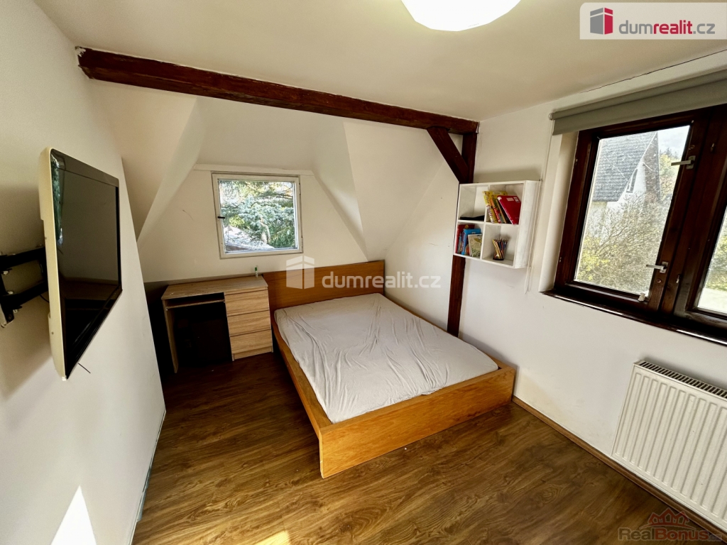 V přízemí domu najdete prostorný obývací pokoj s krbem a rozvody tepla do ostatních místností, kuchyni s jídelnou, koupelnu s WC a technickou místnost. V 1. patře se nachází ložnice se vstupem na balkon, dva další pokoje a koupelna, která je před dokončením. Dům je vytápěn elektrickým kotlem nebo krbem, voda je z vlastní studny, odpad je sveden do jímky, ohřev vody zajišťuje elektrický bojler.