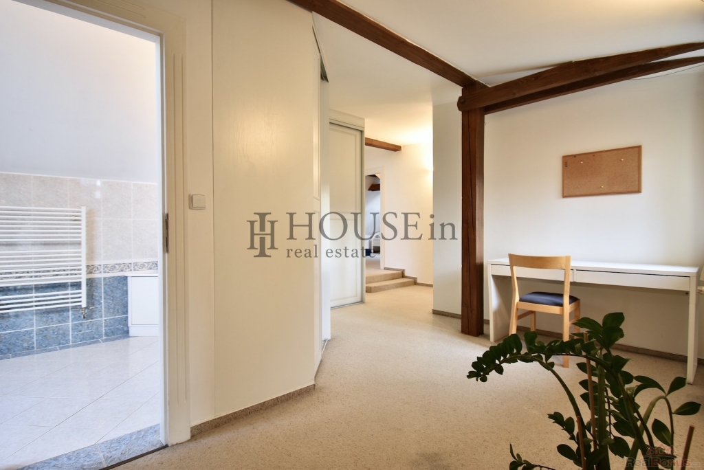 K pronájmu nabízíme kompletně vybavený, velmi pěkný rodinný dům o podlahové ploše 257,5 m2 s dispozicí 5+1, garáží pro dva automobily a zahradou o výměře 512 m2. Dům má dvě nadzemní podlaží, obytné podkroví a jedno podzemní podlaží. Nachází se v klidné vilové zástavbě v ulici Nad Havlem, Praha 4 ? Krč, jen pár minut chůze od vlakového nádraží Praha?Krč a zastávky autobusu Višňová.