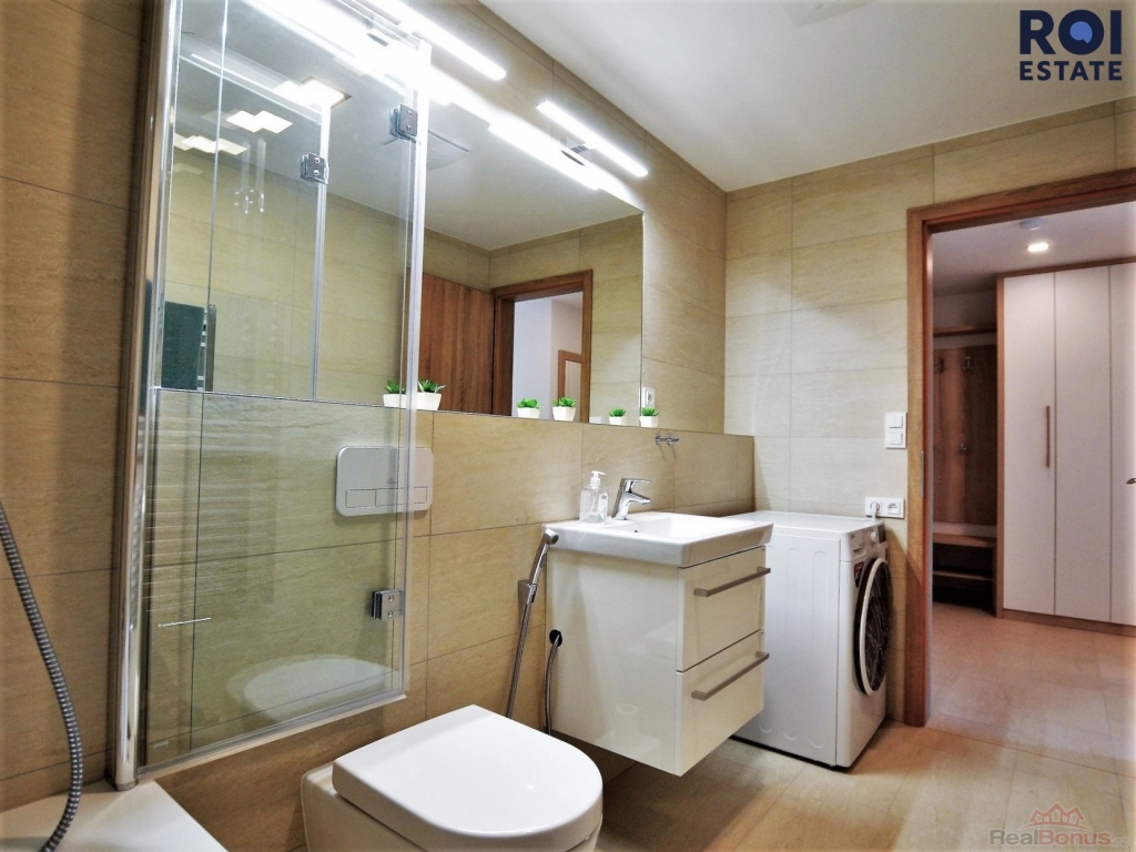 Byt nabízí dva samostatné neprůchozí pokoje, praktické venkovní žaluzie a moderně vyřešenou kuchyňskou linku včetně všech potřebných spotřebičů jako je lednice, myčka či trouba v kombinaci se sporákem. Na chodbě se můžete těšit na velkou vestavěnou skříň a další úložný prostor Vám nabídne navíc prostorná šatna. V bytě je dále koupelna s vanou, pračkou a WC.  Jinak se byt nabízí nevybaven.