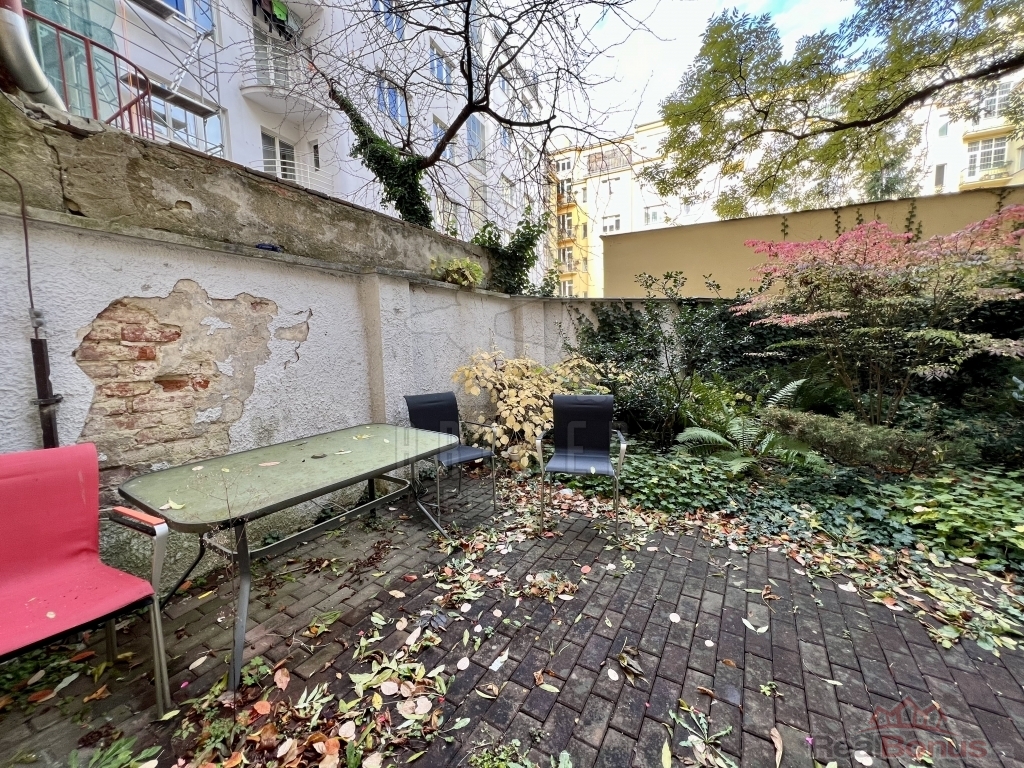 Dispozičně se jedná o příjemný byt 1+1 se samostatným vstupem na nádhernou zahradu se vzrostlými stromy ve vnitrobloku. Při vstupu ze společných prostor se ocitneme v předsíni, která slouží jako komunikační tepna mezi všemi místnostmi bytu a zároveň poskytuje dostatek místa pro úložné prostory. Ve vnitřní části bytu nalezneme samostatnou kuchyňku vybavenou všemi potřebnými spotřebiči a velkou koupelnu se sprchovým koutem a toaletou. Mezi oběma místnostmi je k dispozici šikovná komora. Opravdovou perlou celé jednotky je ovšem rozlehlý pokoj, který slouží jako pracovna o obývací pokoj v jednom. Lze jej pohodlně rozdělit na ložnici, společenskou zónu s jídelním koutem a pracovnu.