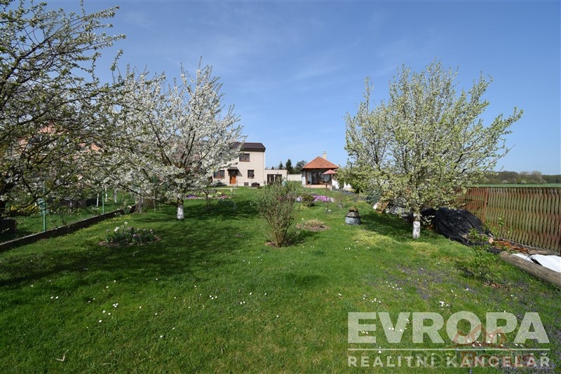 Na pozemku je i pěkný, velmi praktický a prostorný volně stojící zděný zahradní domek o užitné ploše 35 m2. Na zahradní domek navazuje zastřešená terasa s krásným výhledem nejen na celou velkou zahradu, ale i do okolní krajiny. Zahradní domek disponuje velkou obývací místností vytápěnou krbovými kamny na dřevo, dále pěknou kuchyňkou, sprchovým koutem a WC. Pod kuchyňkou je sklep, ve kterém je umístěn elektrický bojler. Sklep s ohledem na jeho velikost je možné využít i jako sklep na ovoce a zeleninu.