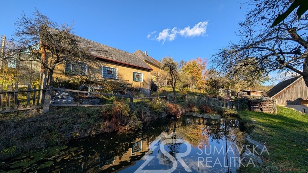 Popis: Nabízený dům má vazbu k nedalekému zámku Mlázovy jehož byl součástí  a historie zámku sahá až do roku 1721. Dům leží v klidném prostředí pod Šumavou, v kraji s krásnými výhledy, čerstvým vzduchem a blízkostí lesů, ale zároveň s přijatelnou dopravní dostupností. Svým průčelím nahlíží na obecní náves s kapličkou. Hlavní stavbou je zděné obytné stavení se sedlovou střechou krytou eternitem. Okna jsou původní dřevěná špaletová, která dodávají objektu rustikální atmosféru. K domu přiléhá kotelna a kolna na dřevo, se studnou pro závlahu. Okolo domu se rozprostírá zahrada vybavená zahradním altánem, skleníkem, bývalým včelínem a dvougaráží s montážní jámou. Pozemek je udržovaný a dům je ve velmi zachovalém stavu, přestože je v původním stavu.