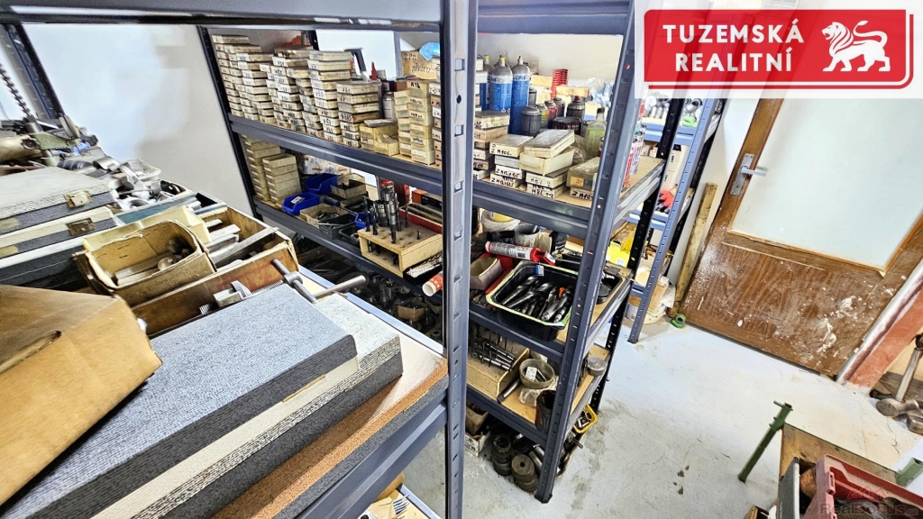 Prostor vznikl na základě skvělého nápadu propojení sedmi garáží plus jedna garáž naproti. Vznikly 2 dílny, 4 sklady, kancelář, kuchyňka se šatnou, WC a sprcha. Majitel zde v roce 2021 rozjel soustružnickou dílnu a kovoobrábění, a protože roste, kupuje přes naši realitní kancelář mnohem větší objekt. Je důkazem, že se zde dá skvěle začít.