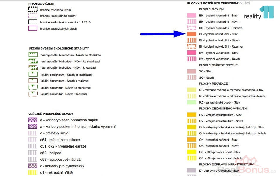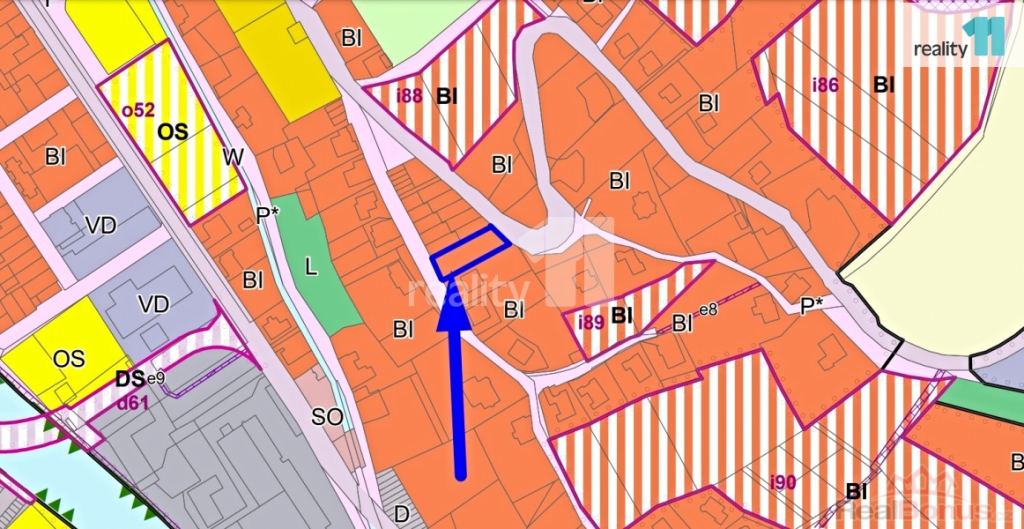 V uzemním plánu je oblast vedena pro bydlení individuální, lze postavit jak rodinný dům o 2 podlažích + podkroví, tak i dům bytový se 4 podlažími, s nutným parkováním/stáním na vlastním pozemku, vše o půdorysu cca 215 m.