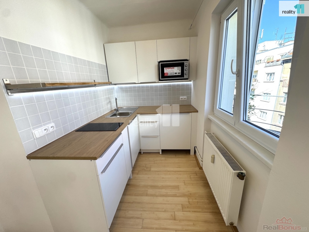 Byt o obytné ploše 48,8 m nyní prošel renovací a bude pronajímán nezařízený. Dispozičně je rozdělen na vstupní chodbu, koupelnu se sprchovým koutem a toaletou, kuchyni s novou kuchyňskou linkou (varná deska, mikrovlnná trouba, prostor pro pračku) a vstupem na krásnou, slunnou terasu. Dále je zde velký obytný pokoj, do kterého se pohodlně vejde postel, šatní skříň i pohovka. Na podlahách zrenovované parkety, dřevo a dlažba, plastová okna, moderní obklady v koupelně.