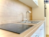 Byt je sice menších rozměrů 27 m2, veškeré místo však bylo využito velmi šikovně. Celý prostor působí vzdušně a světle. Designově řešený obývací pokoj s kuchyňskou linkou, která je zařízená lednicí, troubou, varnou deskou a vestavěnými skříněmi s množstvím úložného prostoru jsou srdcem tohoto útulného bytu.